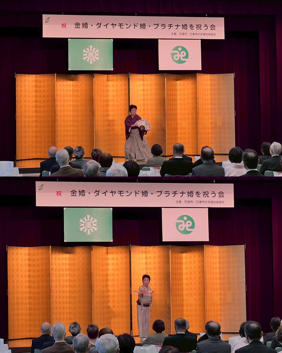 2025/11/22、日進市の「金婚・ダイヤモンド婚・プラチナ婚を祝う会」にて舞を披露させていただきました。