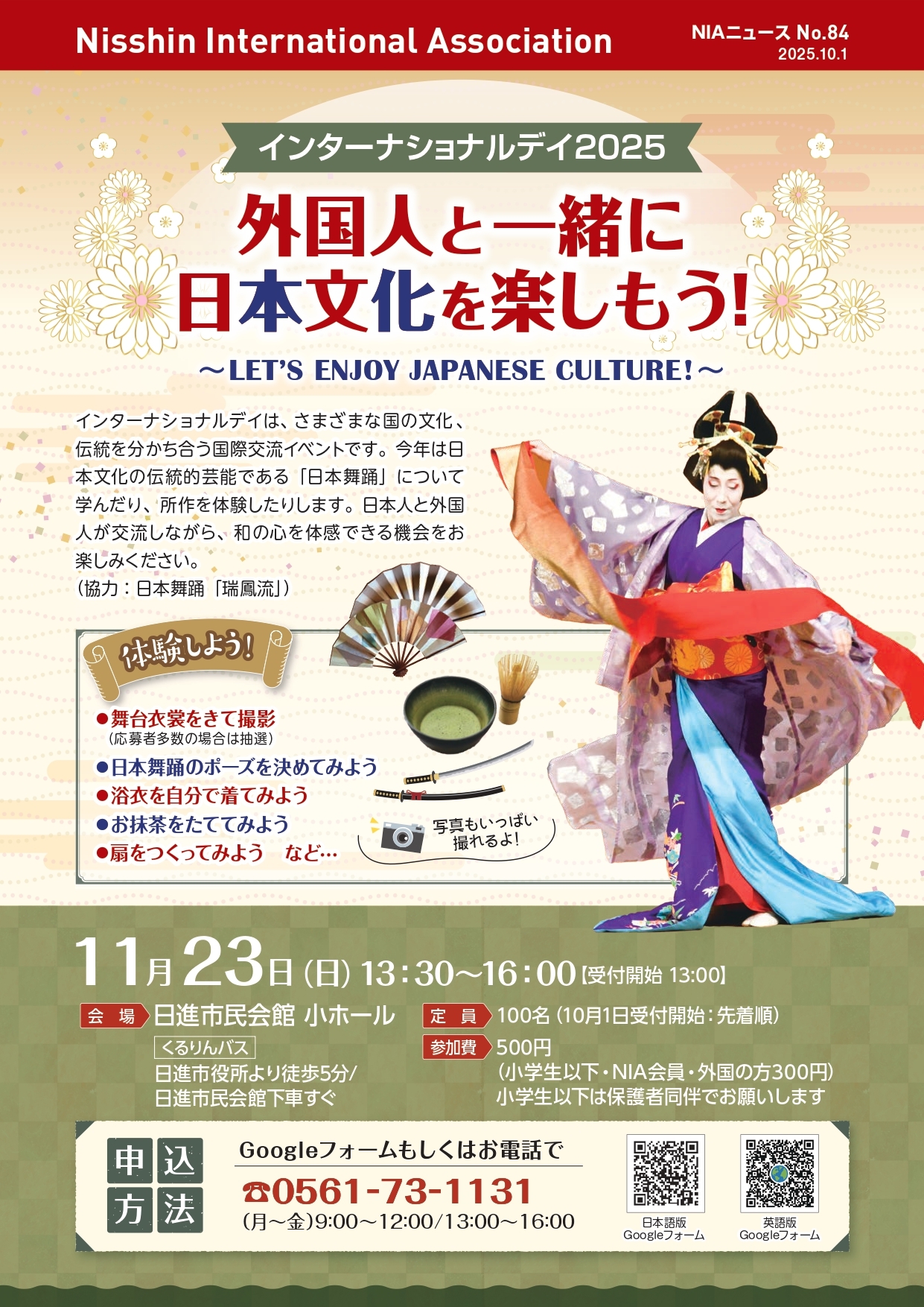 日本人と外国人が交流しながら和の心を体感できる機会をぜひお楽しみください。
